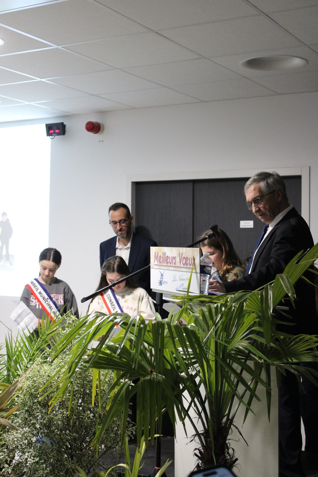 Les anciens élus du Conseil Municipal des Enfants ont présenté leurs actions accomplis au cours de l'année 2025 et les nouveaux élus ont été mis à l’honneur avec la remise des écharpes de la part du Maire Lucien PRINCE, de l’Adjointe au Maire en charge du CME Sabrina PROUTEAU, de son collègue Adjoint au Maire Sylvain LIAIGRE, de Nadège COTTEREAU Conseillère Municipale, du député Stéphane BUCHOU et du Maire de Notre Dame de Riez Hervé BESSONNET.