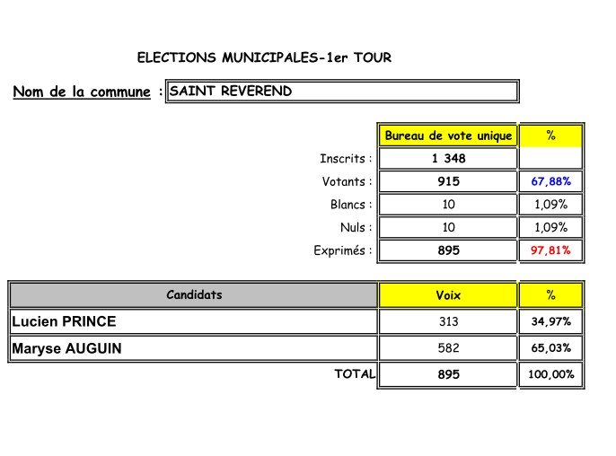 RÉSULTAT DES ÉLECTIONS MUNICIPALES